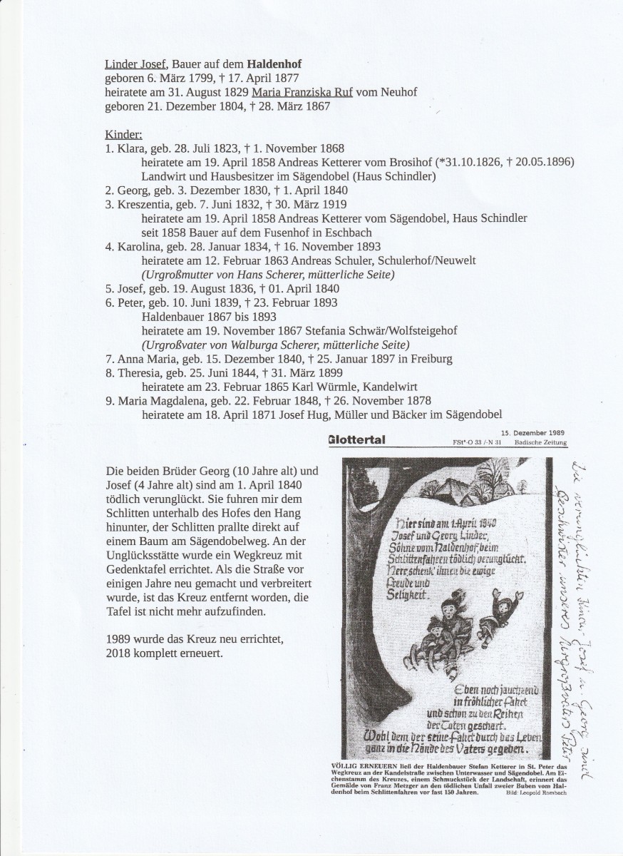 Monika Ketterer vom Haldenhof machte eine Spende von 400,00 € für die Restaurierung des Haldenhof-Kreuzes.