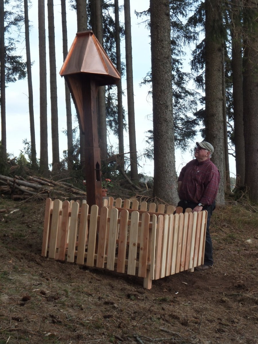 Manuel Schwär vom Felsenhof erledigte die Holzarbeit für das neue Haldenhofkreuz.