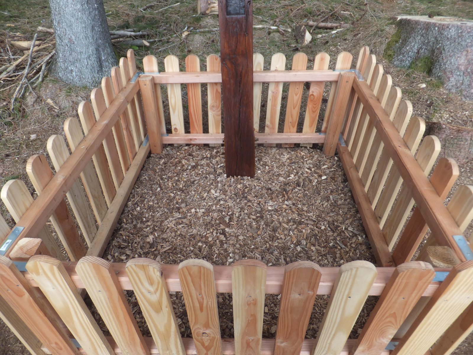 Von Familie Scherzinger vom Merzenhof in Heuweiler stammt ein PKW-Anhänger voll Hackschnitzel für das Gärtchen bei der Tausendmeter-Bank-Kreuz.